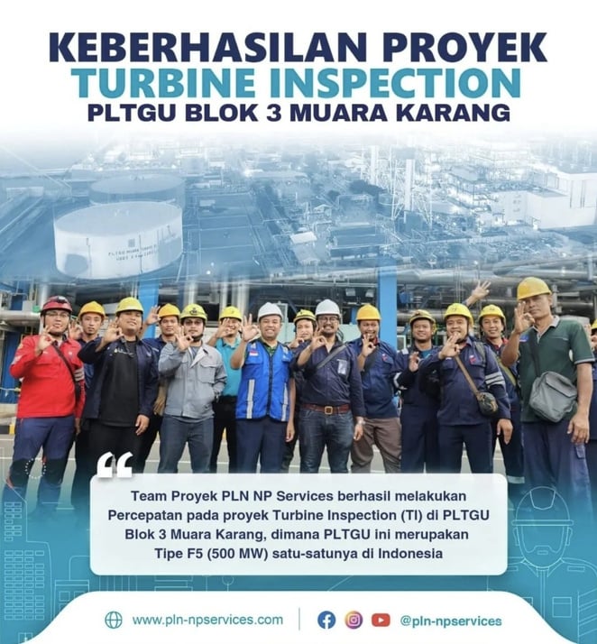 Prestasi dan Pencapaian Terbaik kembali ditorehkan oleh PLN NP Services, Team Proyek PLN NP Services berhasil melakukan percepatan pada Proyek Turbine Inspection (TI) di PLTGU Blok 3 Muara Karang.