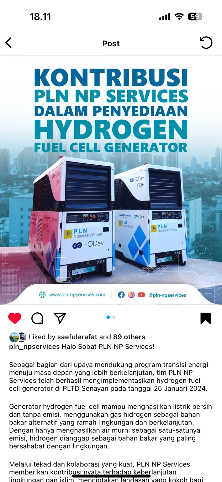 PLN NP Services berkontribusi menyediakan hydrogen fuel Cell Generator untuk mendukung program transisi energi